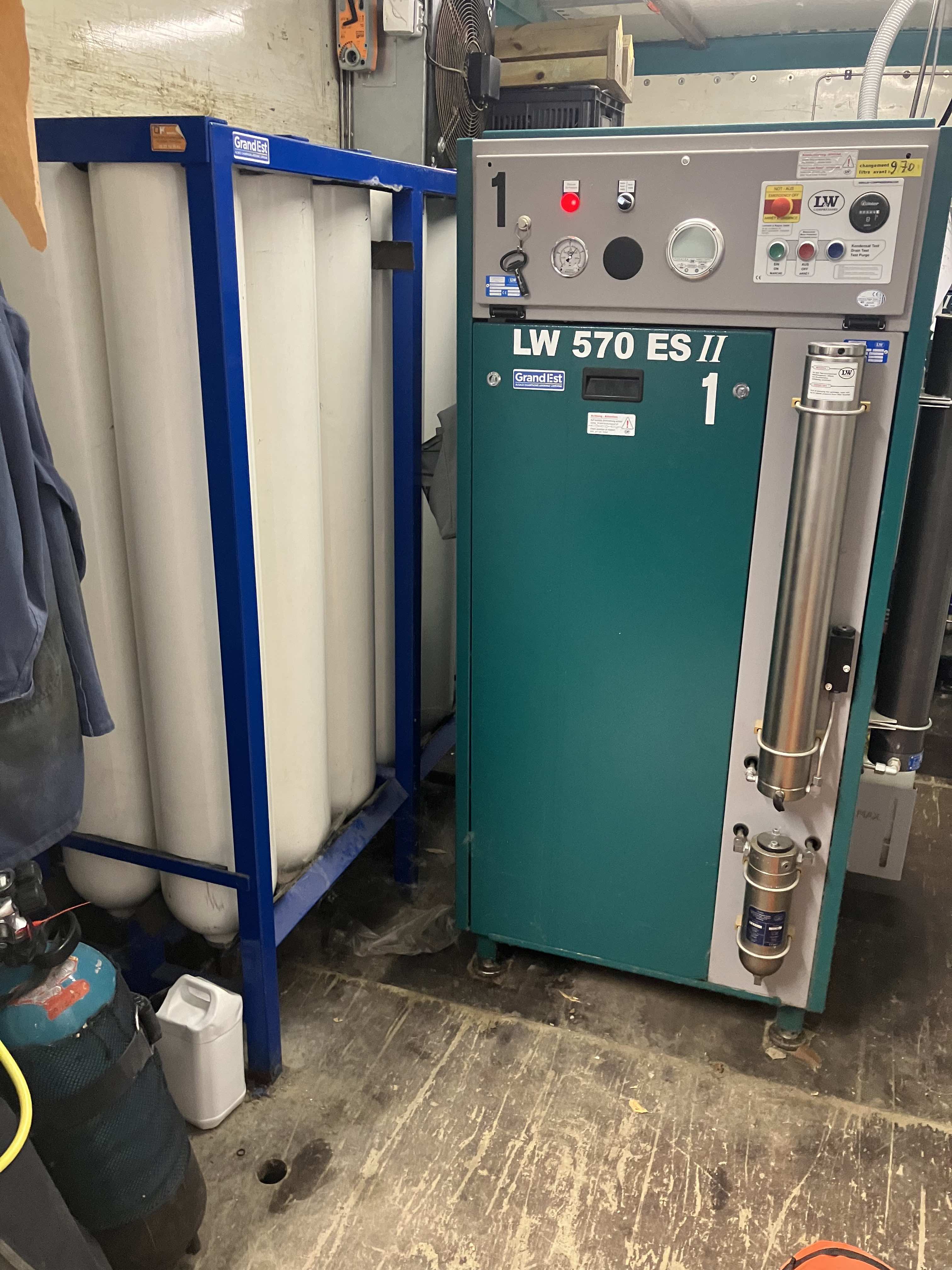 Compresseur air Lenhardt Wagner de 34,2 m3/h, moins de 2000 heures de fonctionnement, très bien entretenu, de 2017. Disponible dès le 3 avril 2025.