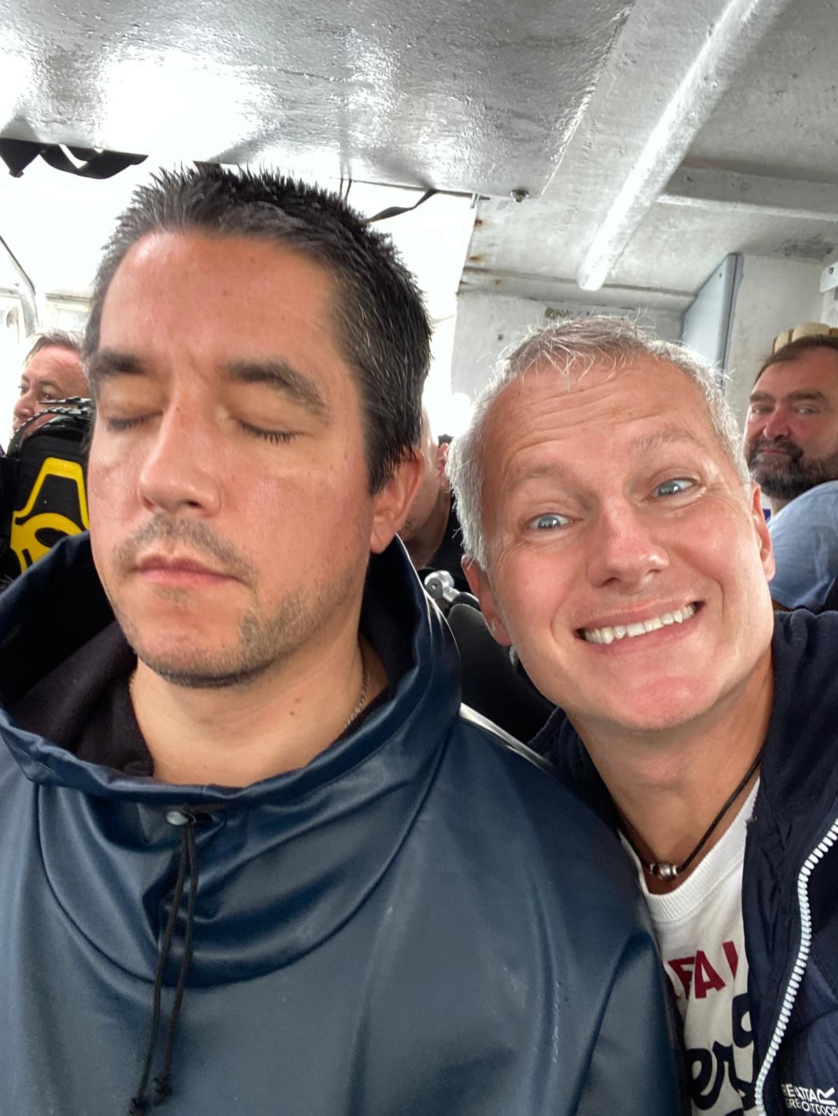 Samedi, 7h30. Hubert, notre cher Président et Directeur de Plongée pour le week-end, vérifie nos CACI et annonce les palanquées du jour. À 8h, tout le monde est prêt devant le club. La mer est toujours agitée, et notre pilote longe la côte pour nous emmener au sec de la Jaune Garde. Les consignes étaient claires : soit remonter à la bouée sous le bateau, soit tirer le parachute pour se faire récupérer. Avec Sylvie, dans un respect scrupuleux des consignes, nous avons tiré notre parachute et, en toute autonomie, un zodiac est venu nous récupérer.