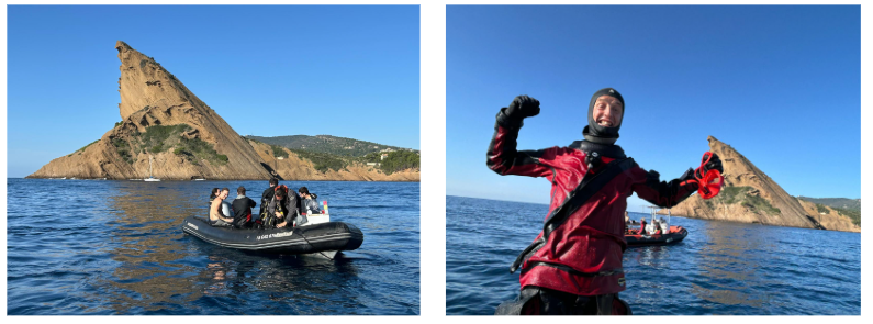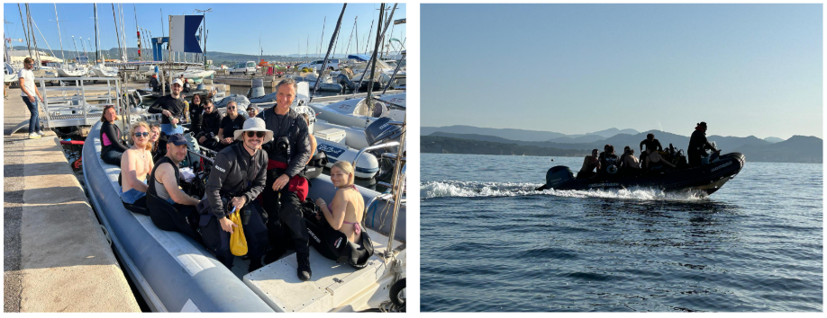 Dans l’après-midi, l’ensemble du groupe est enfin réuni, prêt à plonger dans les eaux claires des Seynerolles. Un objectif nous anime : partir à la recherche du fameux mérou, tant décrit par Martin, notre guide du club Kraken Plongée pour le weekend.